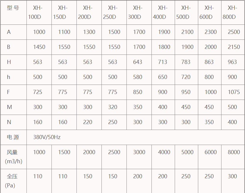 �(fēng)量(m3/h� | 300 | 500 | 800 | 1000 |