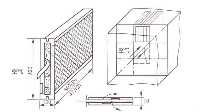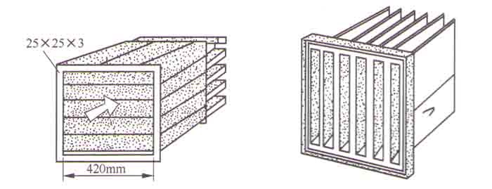 它主要用于過�1-10微米的粉�� 通常,使用玻璃纖維過濾器,無紡布過濾器(過濾材料纖維長達10米)和中小型多孔泡沫塑料過濾�� 與纖維過濾器的過濾機�(gòu)類似,其形狀和結(jié)�(gòu)如圖4-3所�� 它通常被制成抽屜或塊�